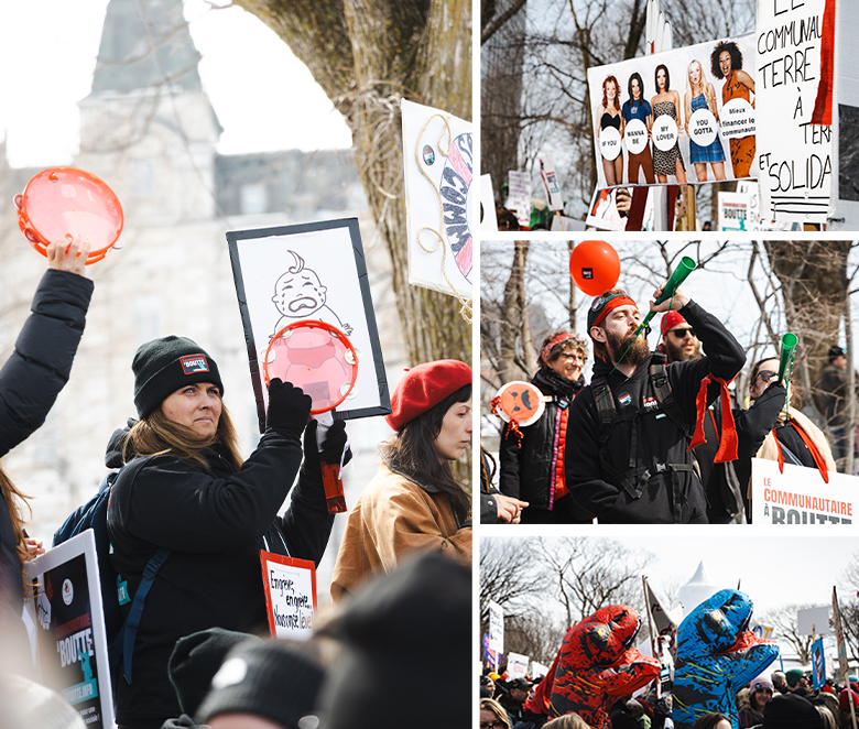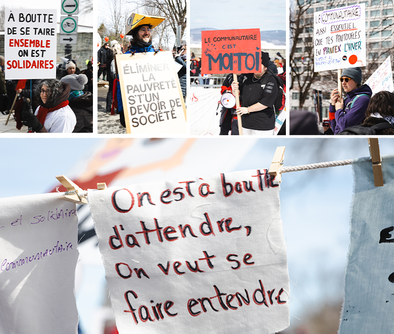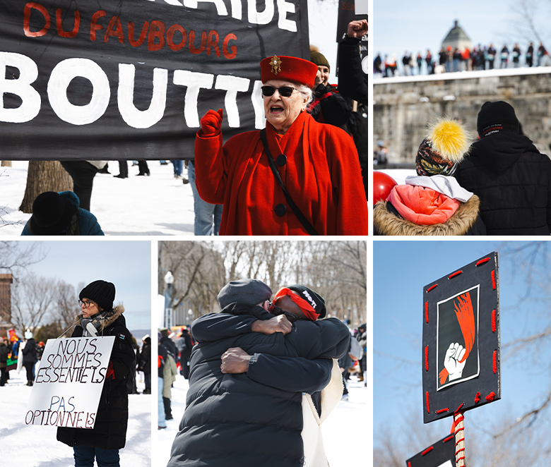 Sur les pancartes, on pouvait lire l'urgence et la solidarité : « Trop unis pour reculer », « À boutte de se taire, ensemble on est solidaires » ou encore le frappant « Nous sommes essentiels, pas optionnels ».